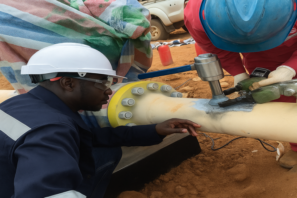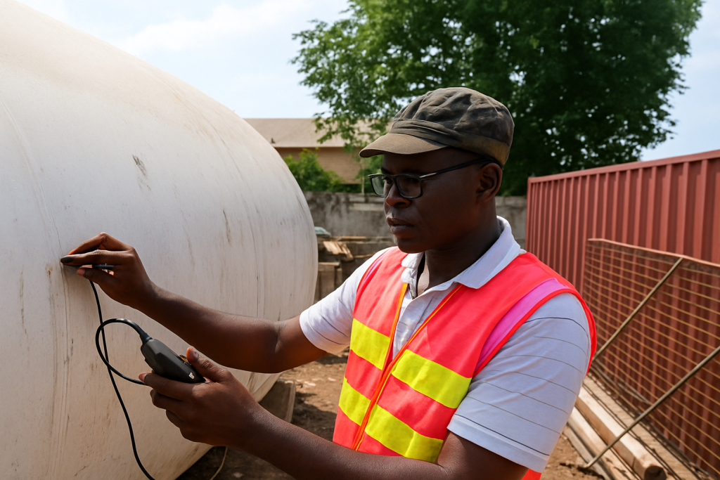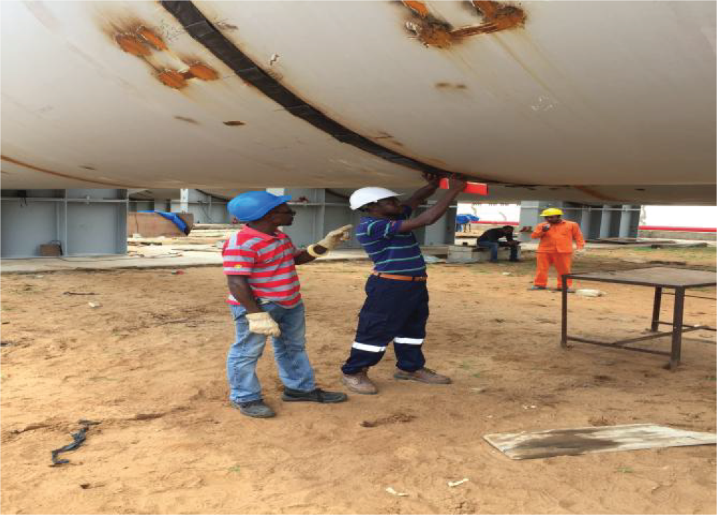 Fig a: Experts carrying out radiographic test on LPG storage vessl in Lome, Togo